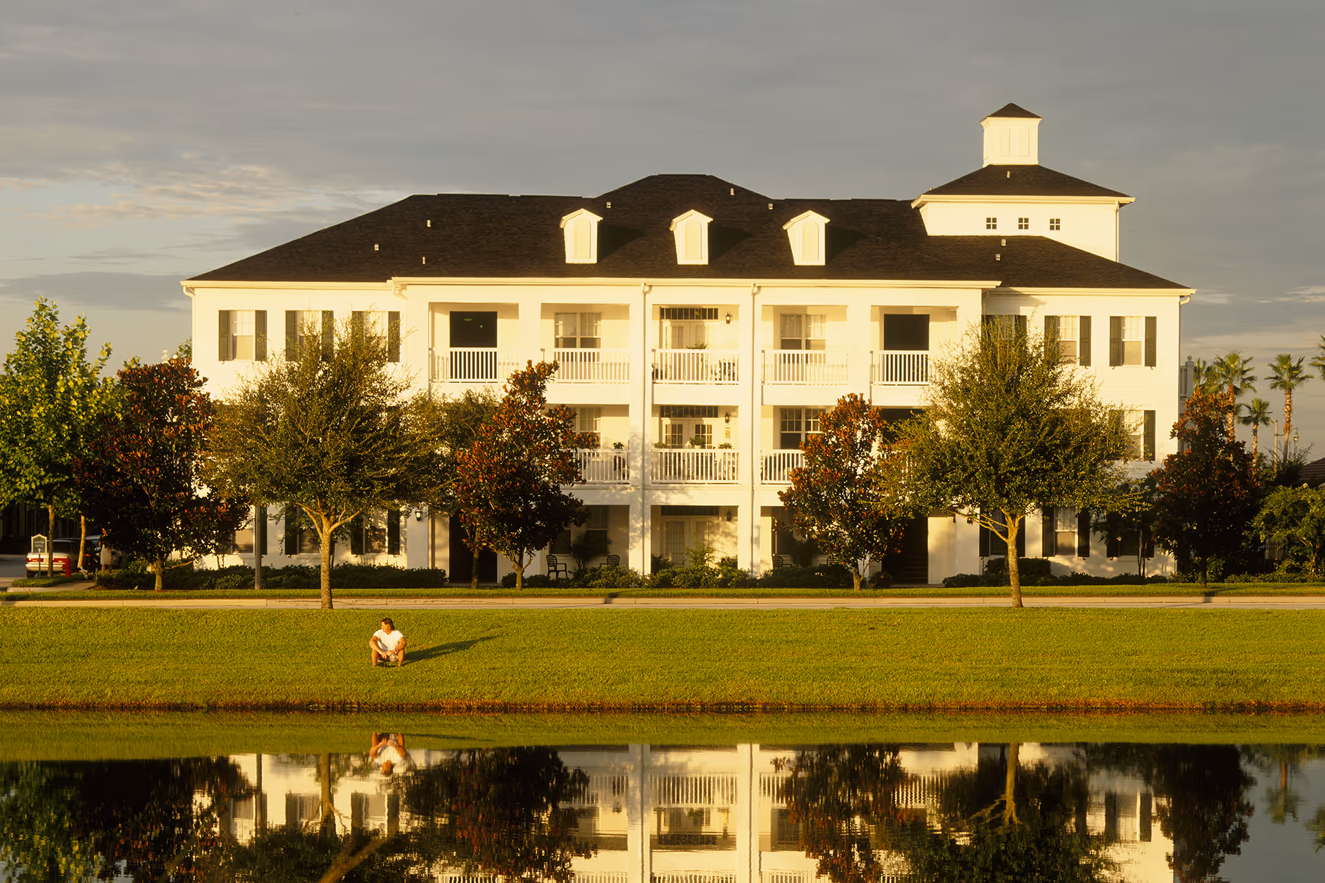 With 726 units on two land parcels, the project uses six building typologies to create a mixed building type neighborhood. The following building types accommodate a variety of lifestyles: traditional garden apartments, courtyard apartments, carriage homes and two and three story townhomes. All housing types are designed to maintain the character of the regional architecture and to complement the style of Celebration.